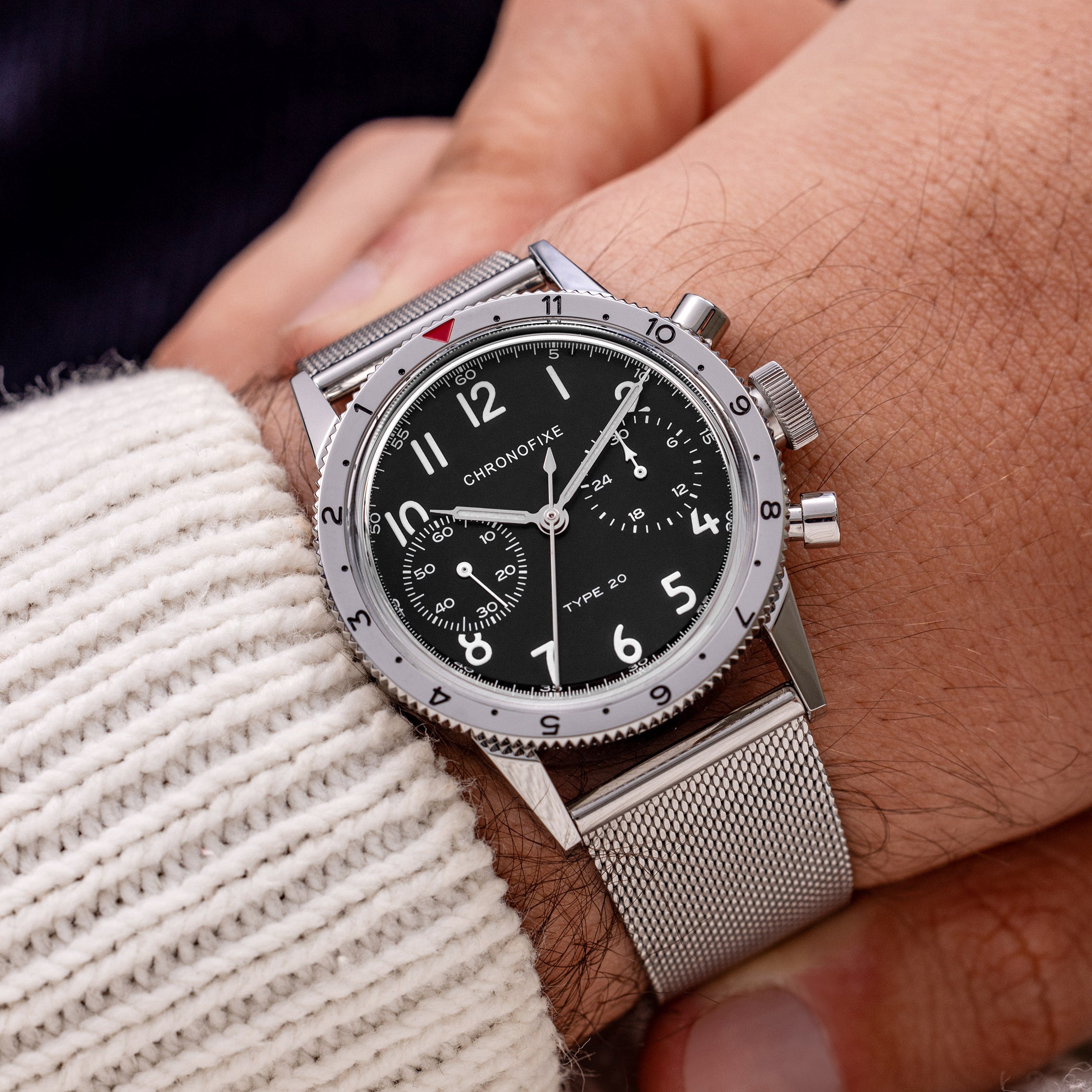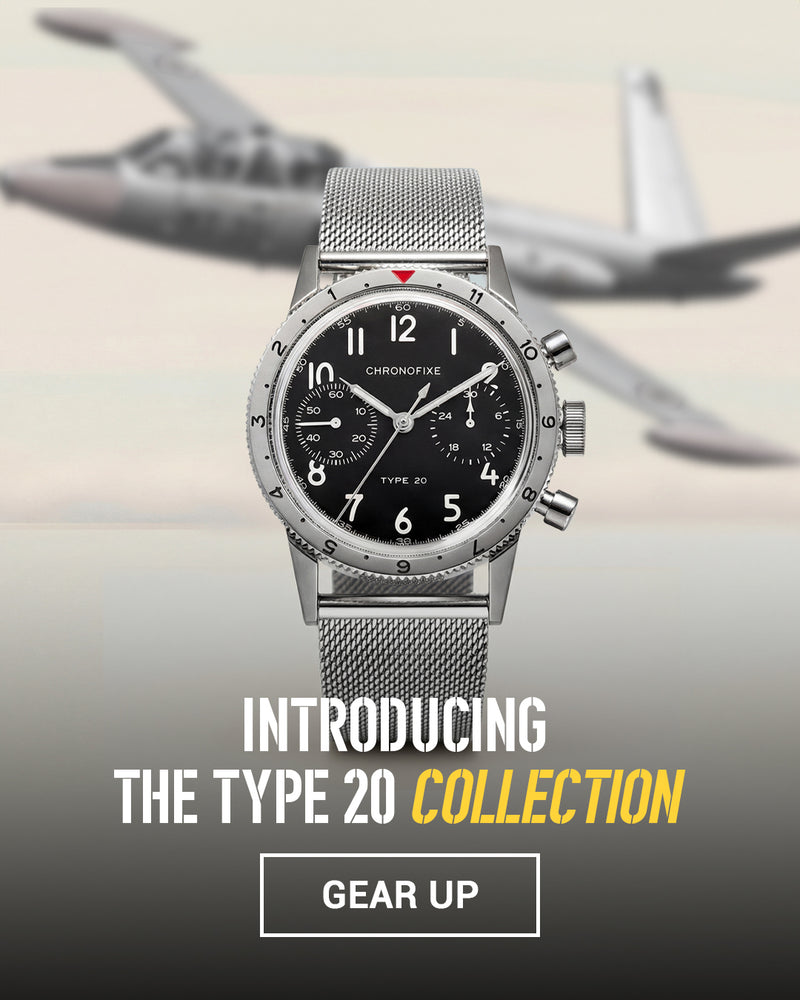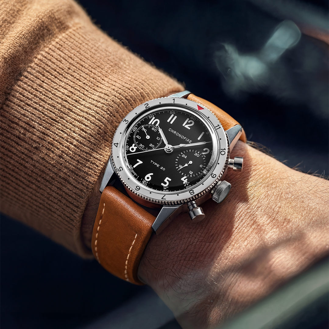 Inspired by French military chronographs of the 1950s, the Type 20 collection revives the purpose-driven design that once guided pilots through the sky. Two models. One standard. Built for clarity, precision, and mechanical control.